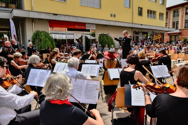 Mit einem Open-Air-Konzert im Innenhof Wiesenstrasse und den vorausgegangenen Strassenmusikformationen sucht das SOL bewusst die Nähe zur Langenthaler Bevölkerung.